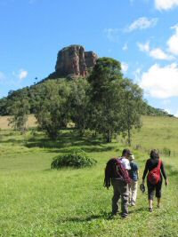 Am Sonntag war wieder schönes Wetter, und so machten wir einen Ausflug nach Analandia, eine Kleinstadt ca 150 km nordwestlich von Campinas. Dort kann man zu einem guten Kletterfelsen wandern, zum Morro do Cuscuziero.