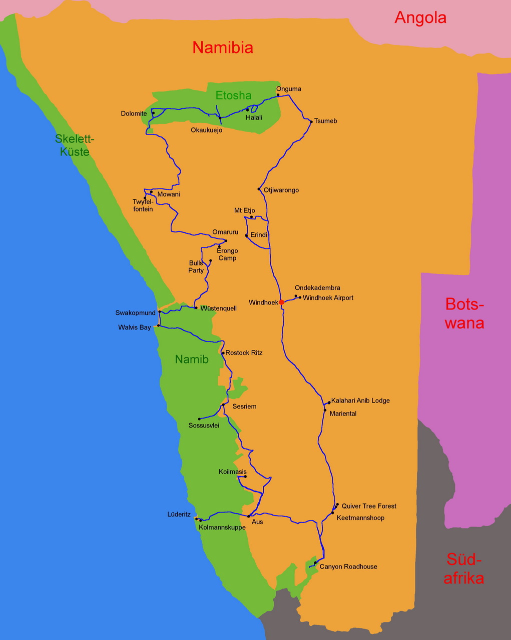 Namibia 2015 Reiseroute