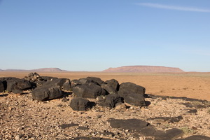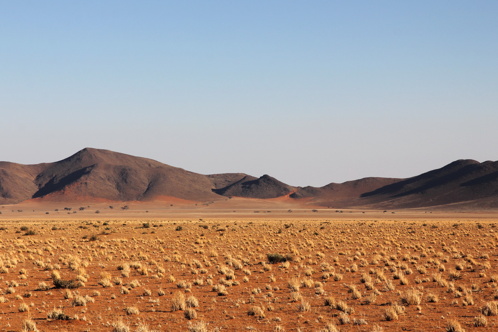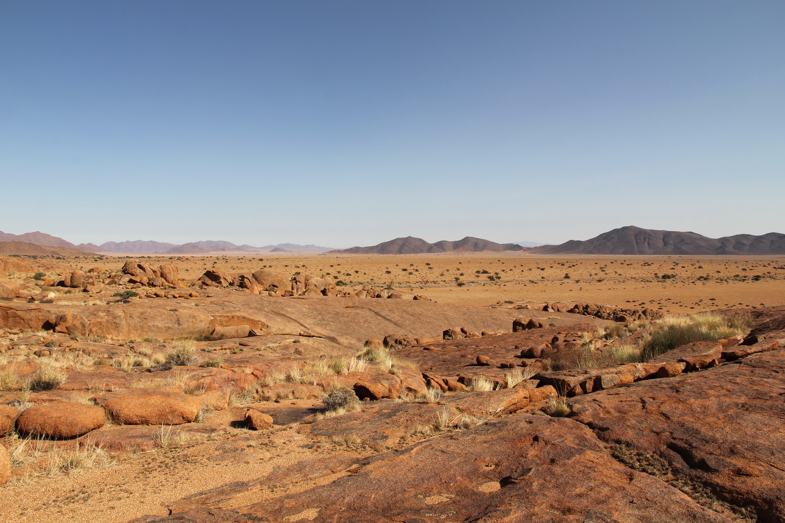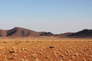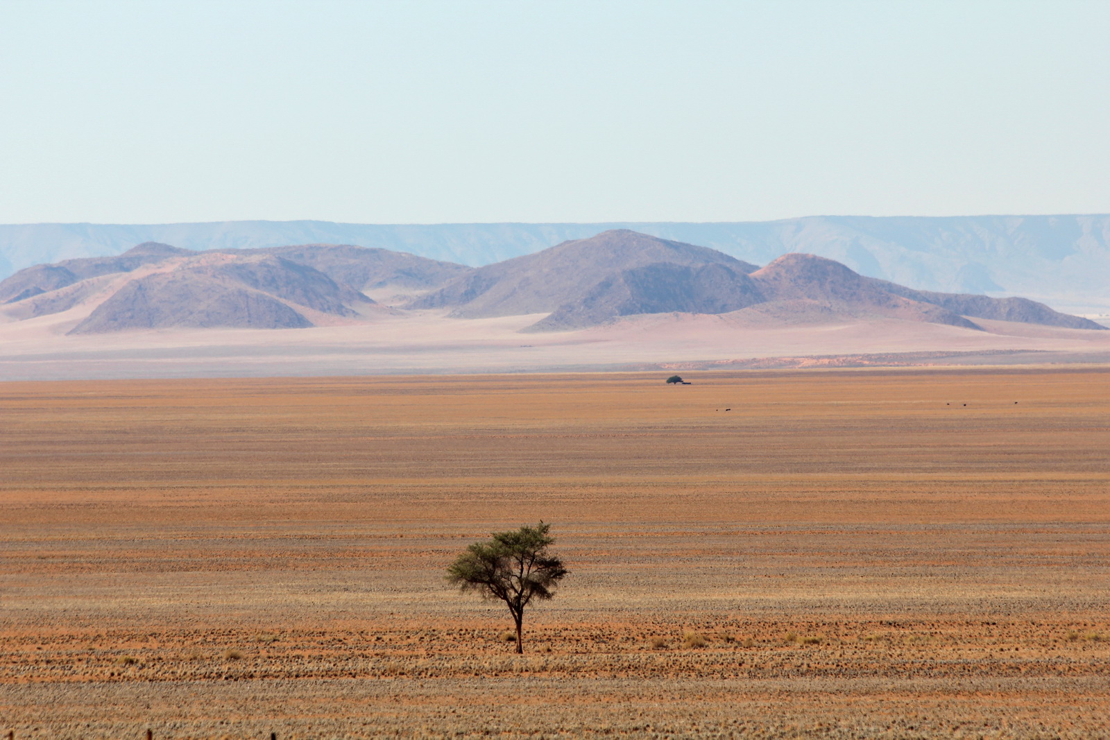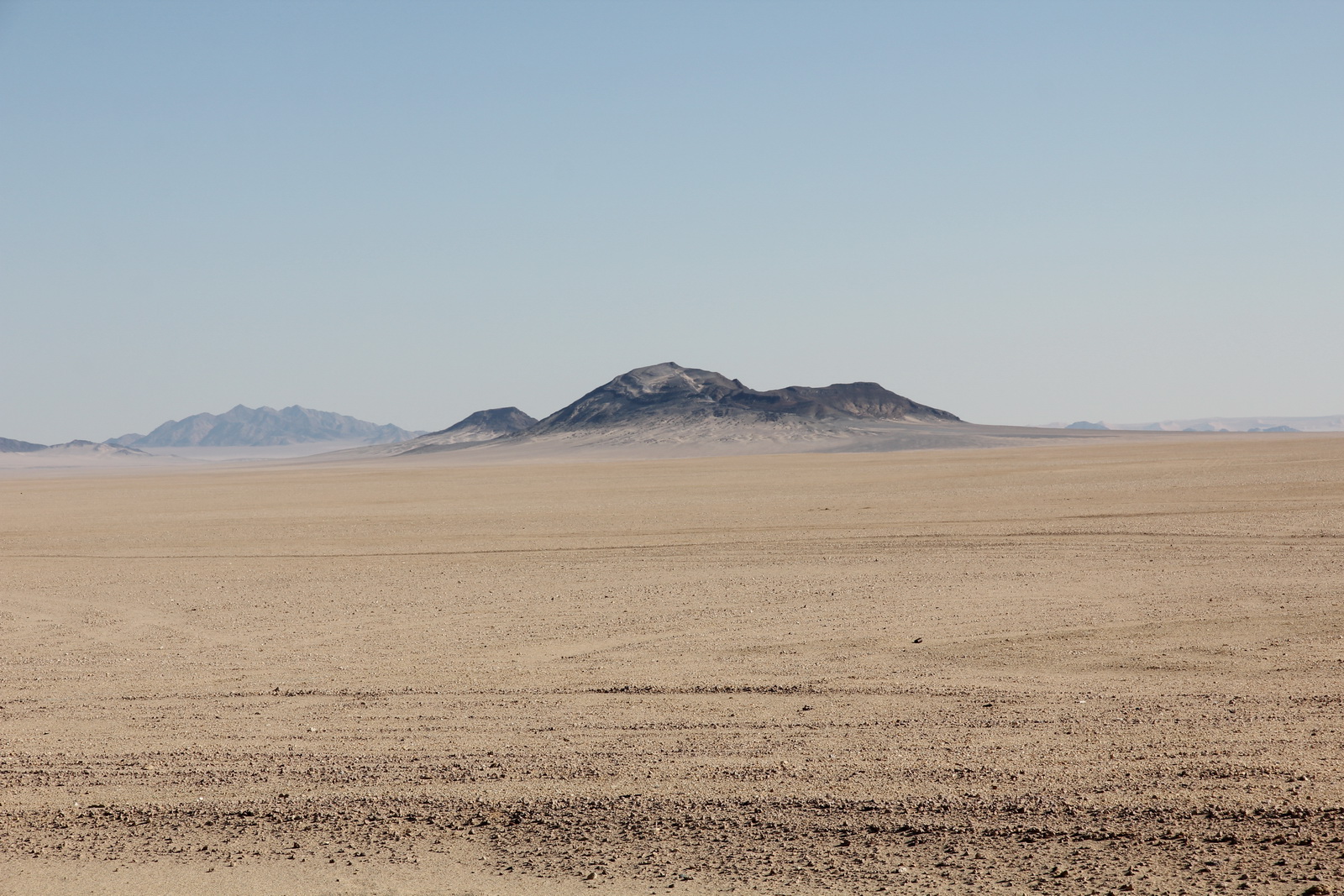 die Landschaft flach und öde, der langweilige Teil der Namib-Wüste