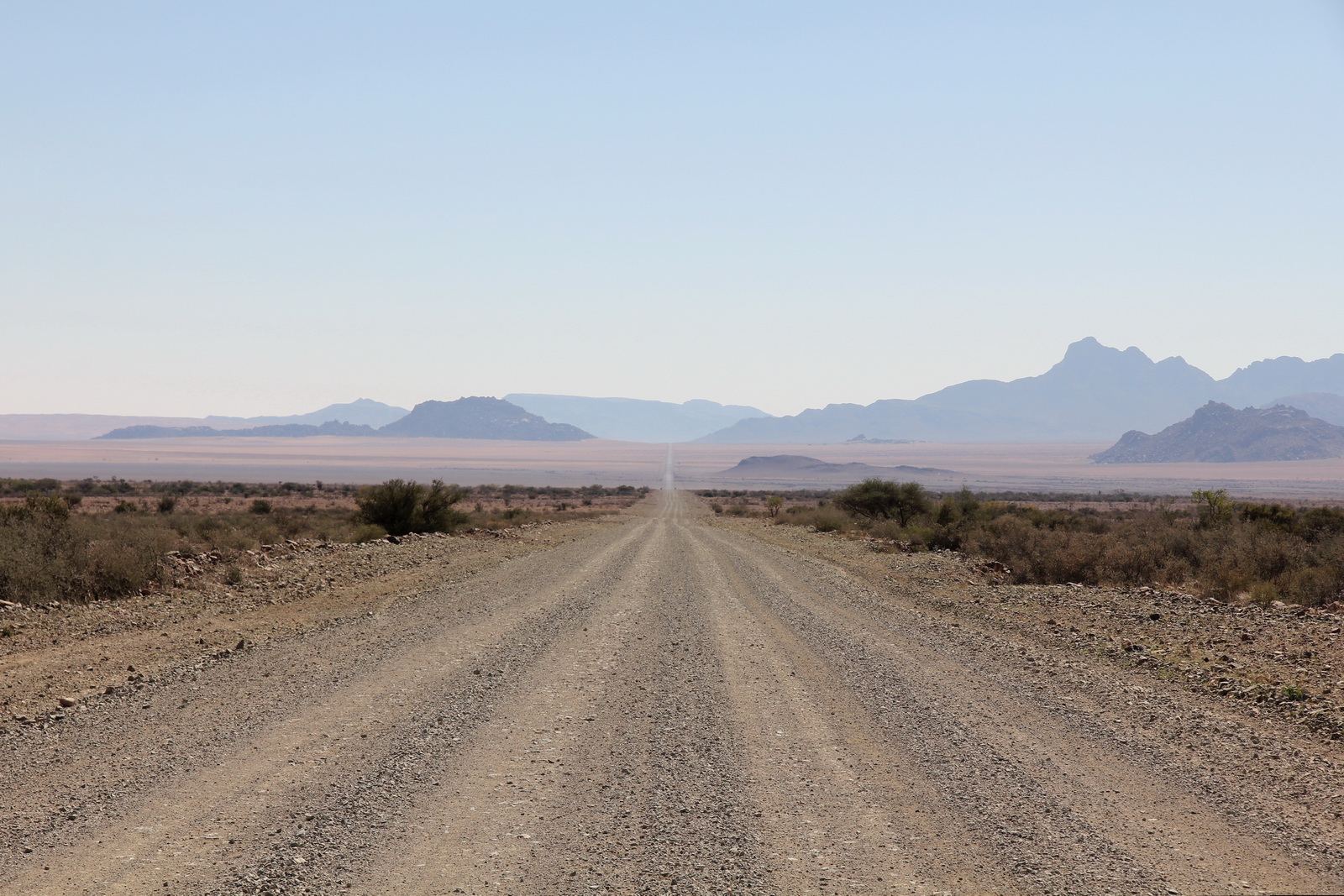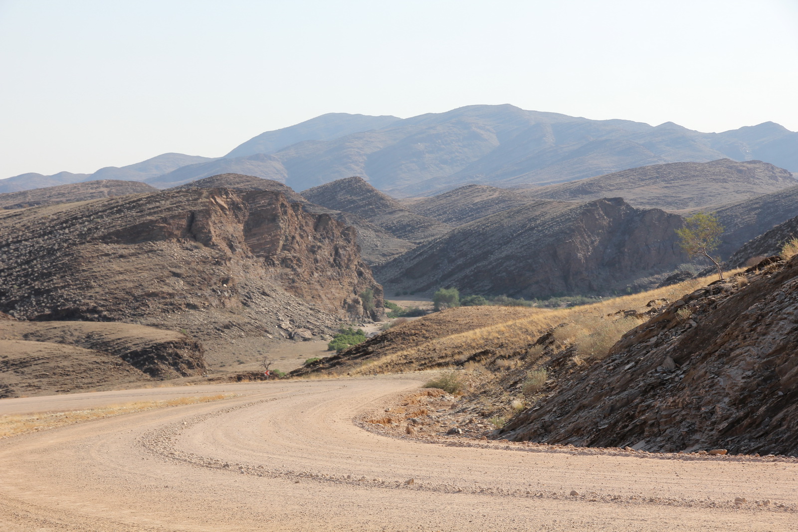 und kurvenreich durch Schluchten und Hügel des Namib Naukluft Parks.