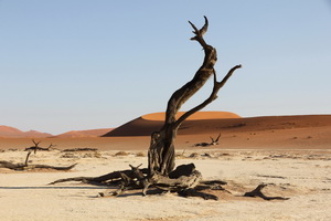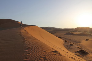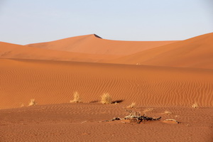 das fahle Morgenlicht ab. An Düne 45 (45 km ab Sesriem) sind schon