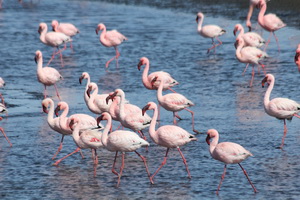eine Wolke in Rosa; Tausende Flamingos. Es weht eine kühle Brise