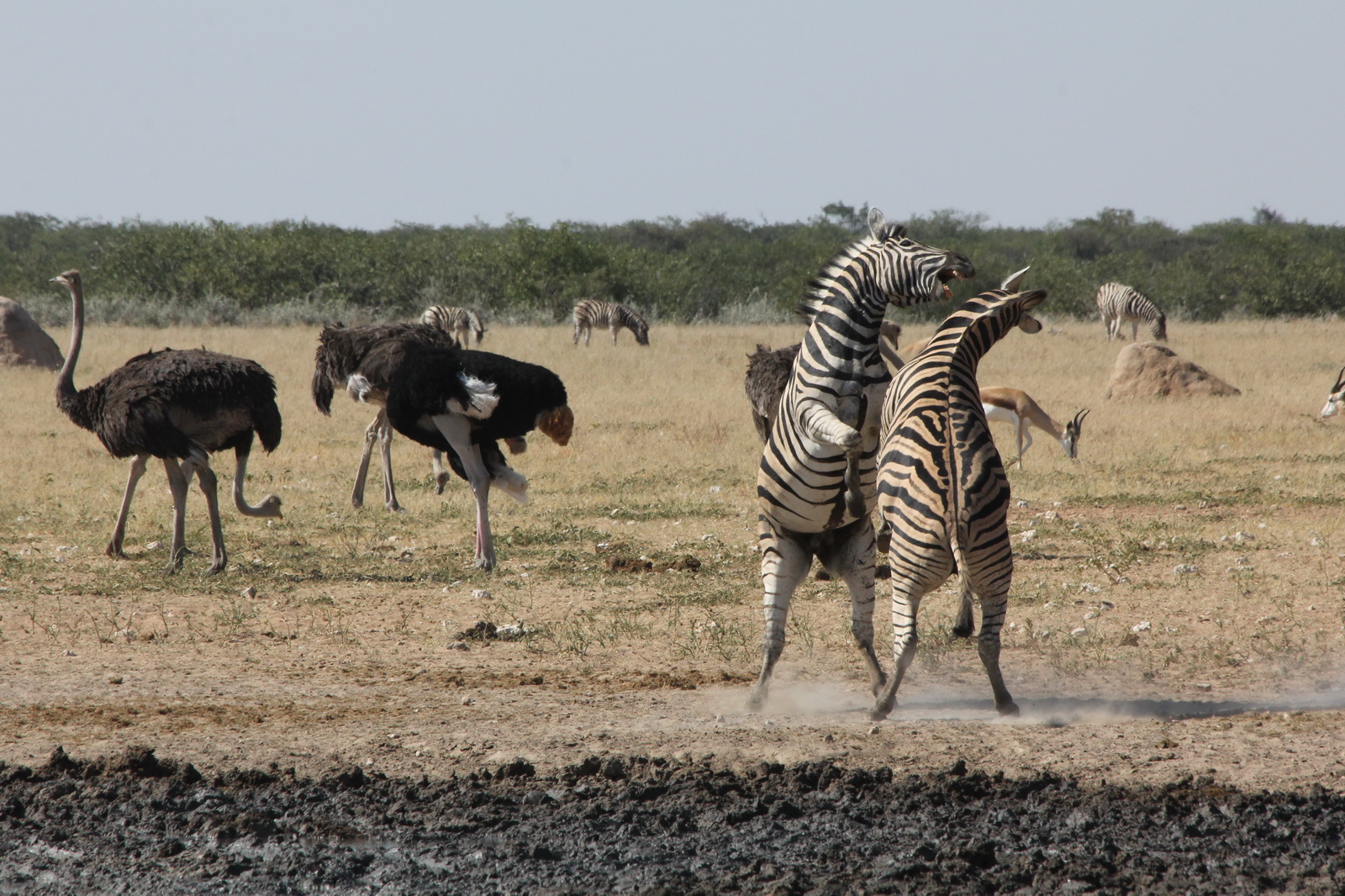 Zebras auf. Und auf dem Pfad flüchten kleine Antilopen vor uns, zu