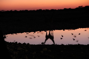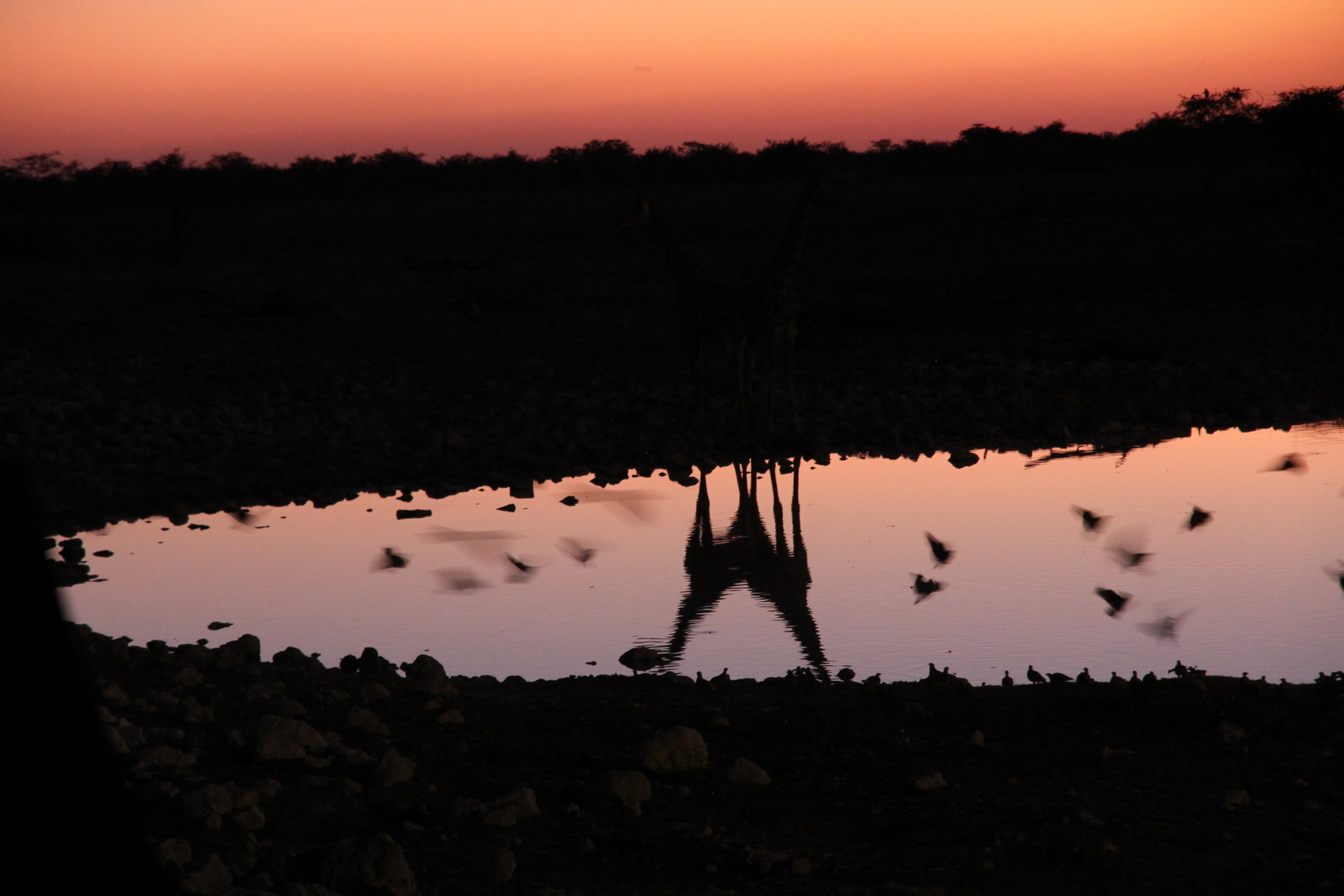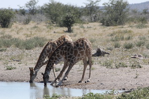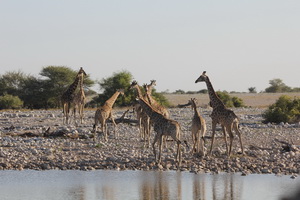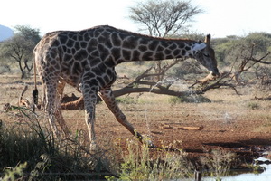 Kamanjab. Kurz von Kamanjab sehen wir unsere erste Giraffe, eine Mutter