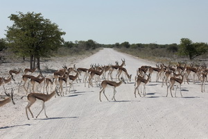 vorwärts. Um etwa 11:30 sind wir am Galton Gate des Etosha Nationalpark.