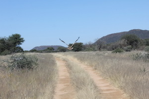 die teilweise ein besserer Feldweg ist, zur D2315, auf der nach Omaruru.